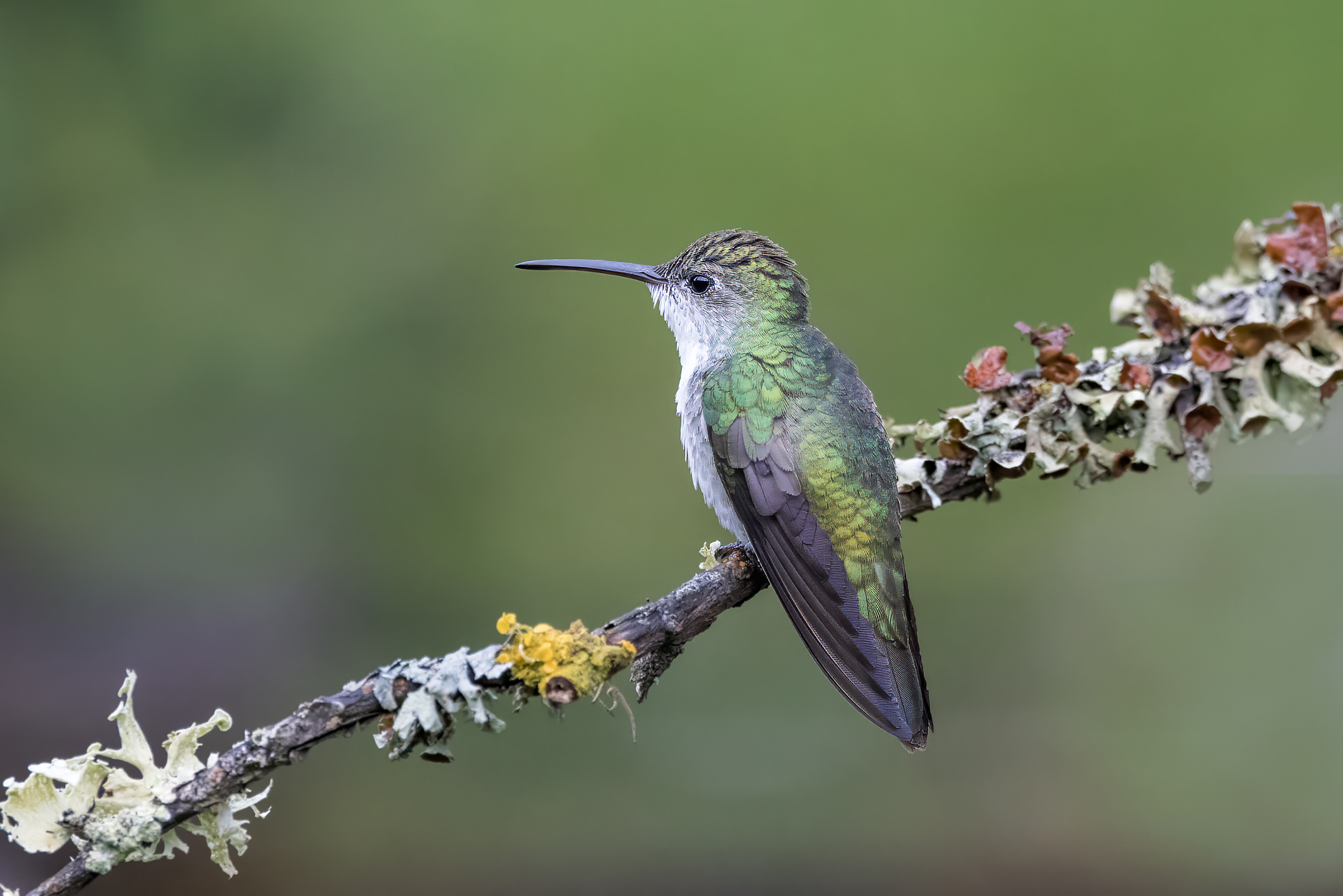 The giant hummingbird is the largest hummingbird in the world, with an 8-inch wingspan and a size comparable to an American robin. Although it isn’t as dazzling as many other hummingbirds, with its drab gray, olive-green feathers, it still puts on an impressive acrobatic show, albeit at a slower pace than its more diminutive cousins.