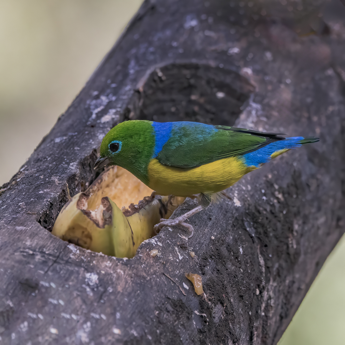 One of the unique aspects of Inkaterra Machu Picchu Pueblo Hotel is its proximity to nature. This was our only cloud forest destination on this particular trip, and Inkaterra provides a wonderful introduction to this distinctive ecosystem. I hoped to see some of the colorful species of tanagers and hummingbirds found at this elevation. An early morning bird-watching tour, led by the hotel’s resident ornithologist did not disappoint. In a few hours we spotted a total of 29 species of colorful tropical birds, including a few that were new to my life list! (My eBird list for the morning is here.) We explored the hotel’s extensive network of trails, which meander through the forest, past waterfalls, and along the banks of the Urubamba River. We followed the call of the distinctive Andean Cock-of-the-Rock, but it played hard to get and didn’t make an appearance. The banana feeders, however provided great views and photos of some of the most spectacular species.